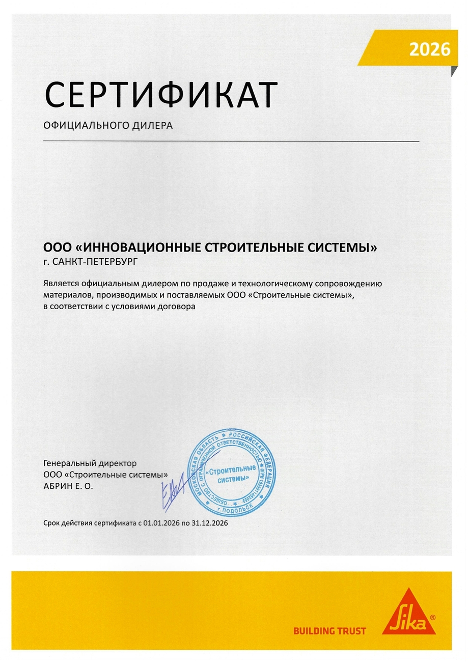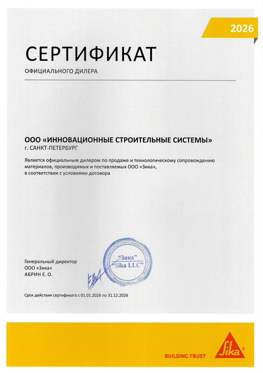 Компания ООО «Инновационные строительные системы» является официальным дилером крупного российского производителя строительной химии - ООО «Строительные системы» (rus.sika.com), с 2024 года входящего в состав корпорации Sika.
